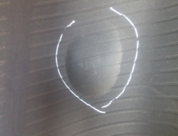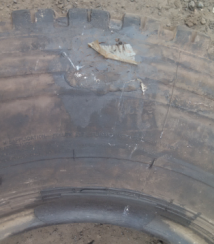 1、轮胎行驶中,胎冠被尖锐物体扎透,为了能继续使用,胎里用胶垫修补使用。