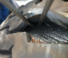3、胎面胶局部受到腐蚀并继续使用。
