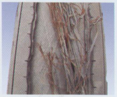 带束层与胎体脱层,脱层界面光滑,有时伴有钢丝之间磨损情况。